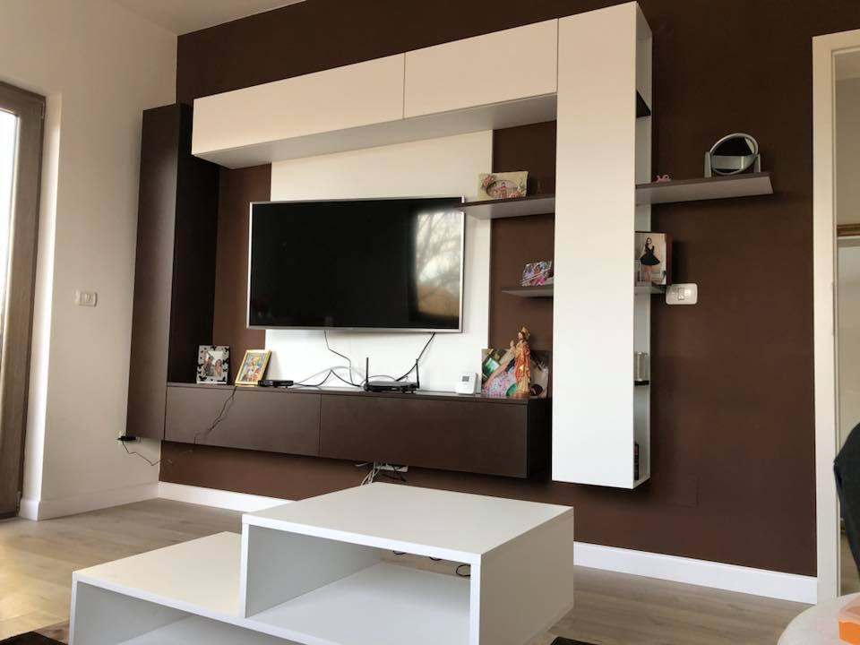 Mobilier de living executat dinMDF AGT. Feroneria folosita este marca Blum Austria cu amortizare. Modelul de mobilier a fost realizat dupa un model ales de client.