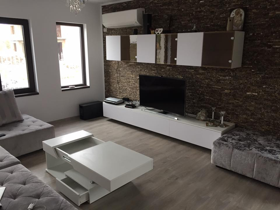 Mobilier de living executat din pal melaminat marca Egger pentru carcase si fronturi de MD, canturile fronturilor sunt de tip ABS de 2mm iar cele ale carcaselor sunt de 0.4 mm. Feroneria folosita este marca Blum Austria. Modelul de living a fost executat dupa cerintele clientului. La comanda putem realiza multe alte modele intr-o variata gama de culori.