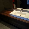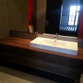 Mobilier de baie executat din pal melamina Egger dublat, cantuit cu ABS de 2mm. Contine trei sertare, sub suprafata lavoarului, echipate cu feronerie Blum cu amortizare. Corpul lavoarului este prins pe faianta pentru a masca tevile de scurgere si alimentare cu apa.