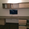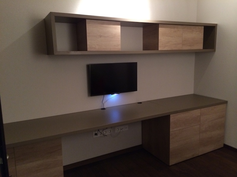 Birou executat din pal melaminat dublat, marca Egger, cantuit cu ABS de 2mm. Feroneria este marca Blum Austria, sertare sunt prevazute cu sistem de amortizare. Deschiderile usilor si sertarelor se face datorita sistemului de tip PUSH.