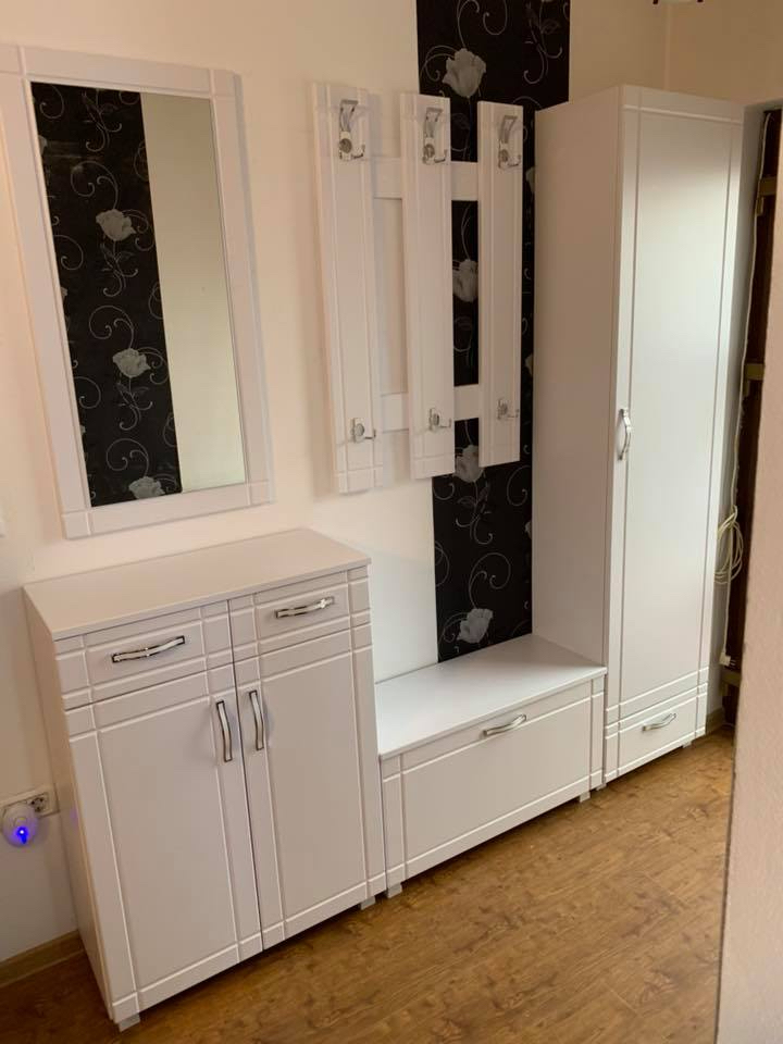 Mobilier de hol realizat la comanda dupa ceriintele clientului si spatiul permis. Executat din pal melaminat de 18 mm marca Egger, cantuit cu ABS de 2 mm pentru fronturi si cant ABS de 0.4 mm pentru carcase.