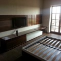 Dormitor realizat din pal melaminat lucios Egger de 36 mm cantuit cu ABS de 2 mm pe toate muchile. Majoritatea imbinarilor au fost executate la 45* cu lamele de lemn, pentru o rezistenta durabila.